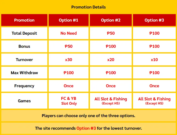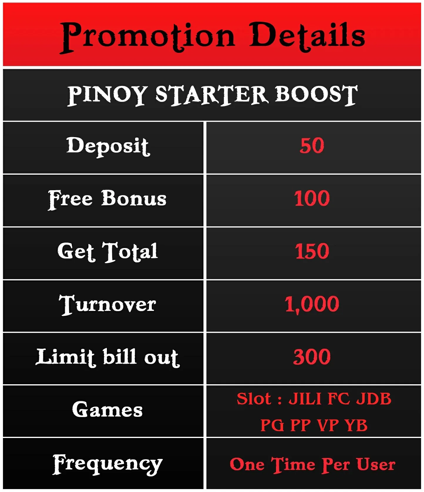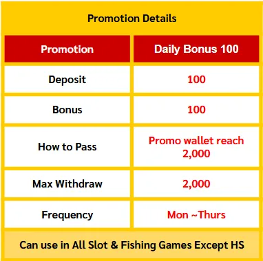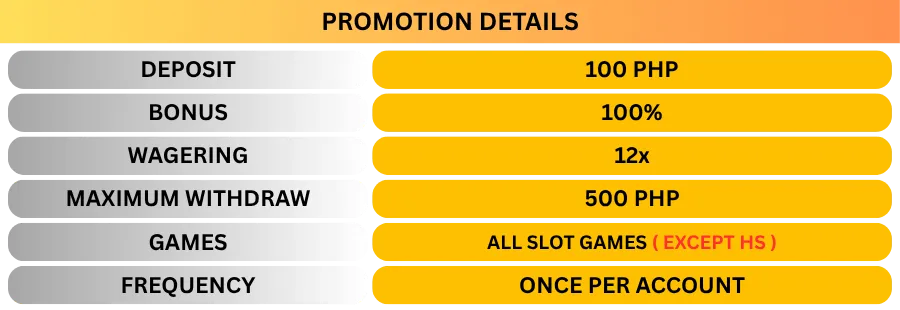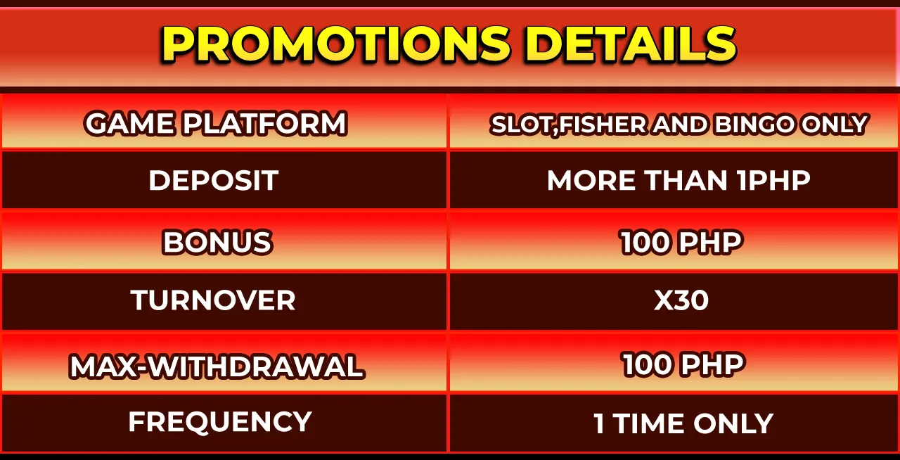 •  Get 100PHP Bonus when you avail the promotion, No turnover needed