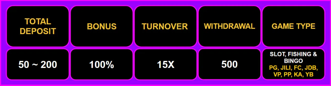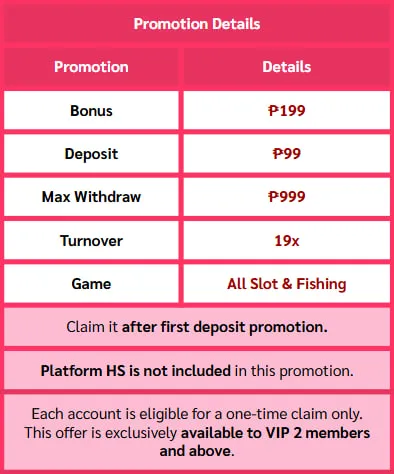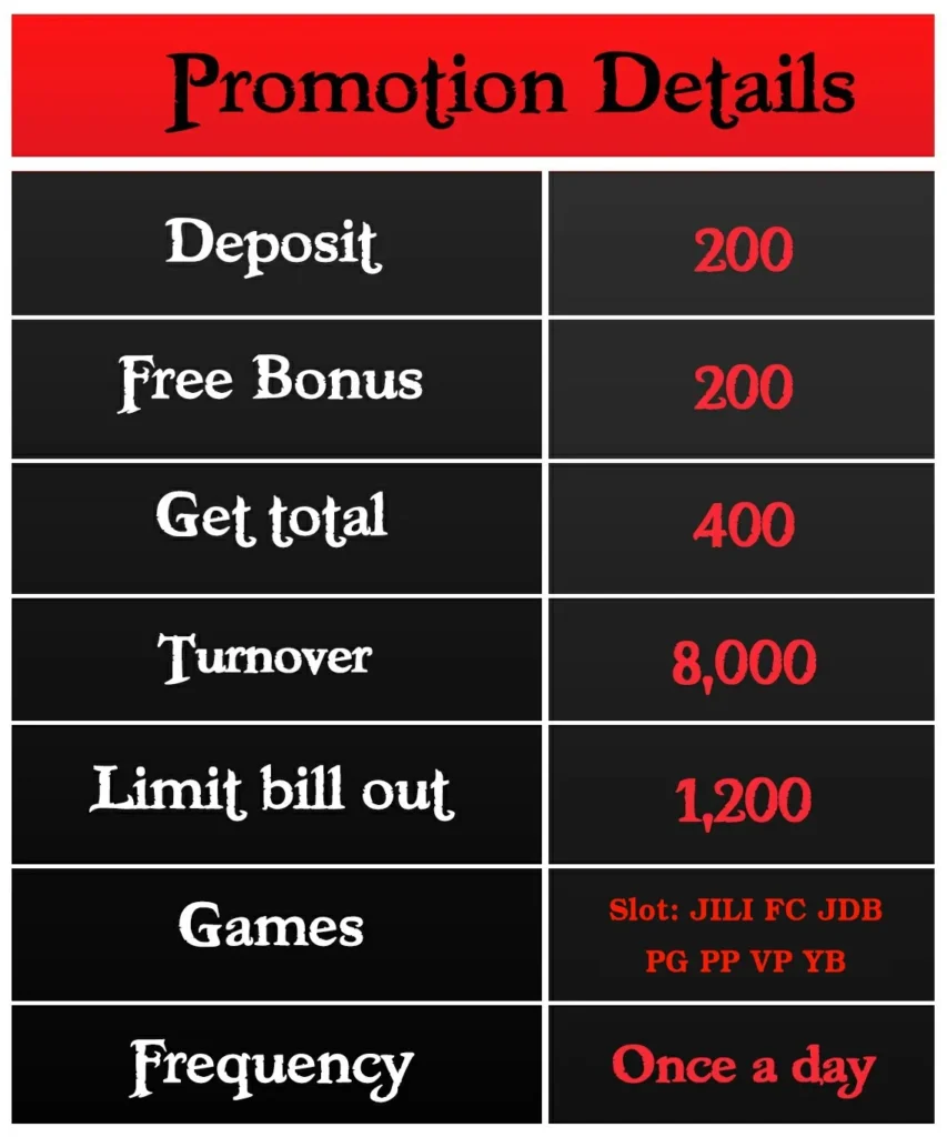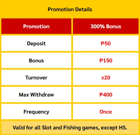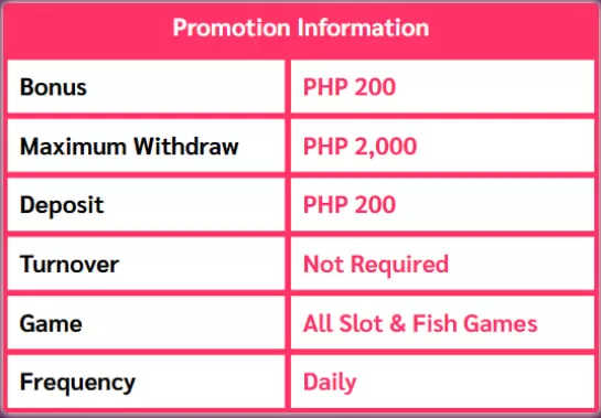 3. A deposit of PHP 200 will result in a credit of PHP 200 in the form of a bonus.