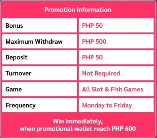 • This promotion is eligible for Monday to Friday. Once the promotional balance reaches PHP 600, it could be immediately withdrawn.