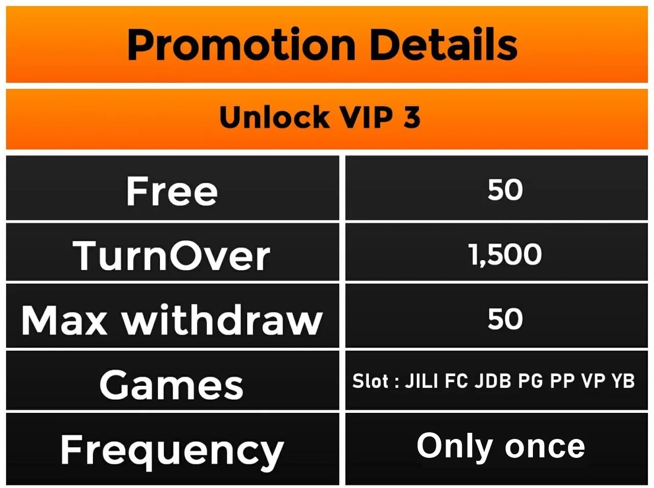 • This promotion is exclusively for new customers who have not claimed the free welcome bonus and have never received a VIP3 gift before.