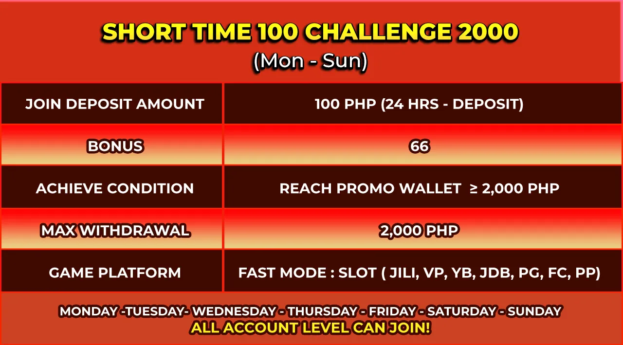 • After the promotion ends, if there are ₱100 or more in the main wallet, you can withdraw the money immediately or continue playing.