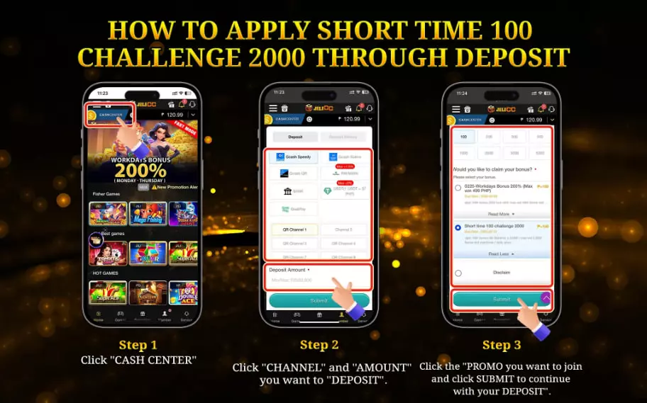 • Deposit ₱50 / ₱100 / ₱200 or more to join.