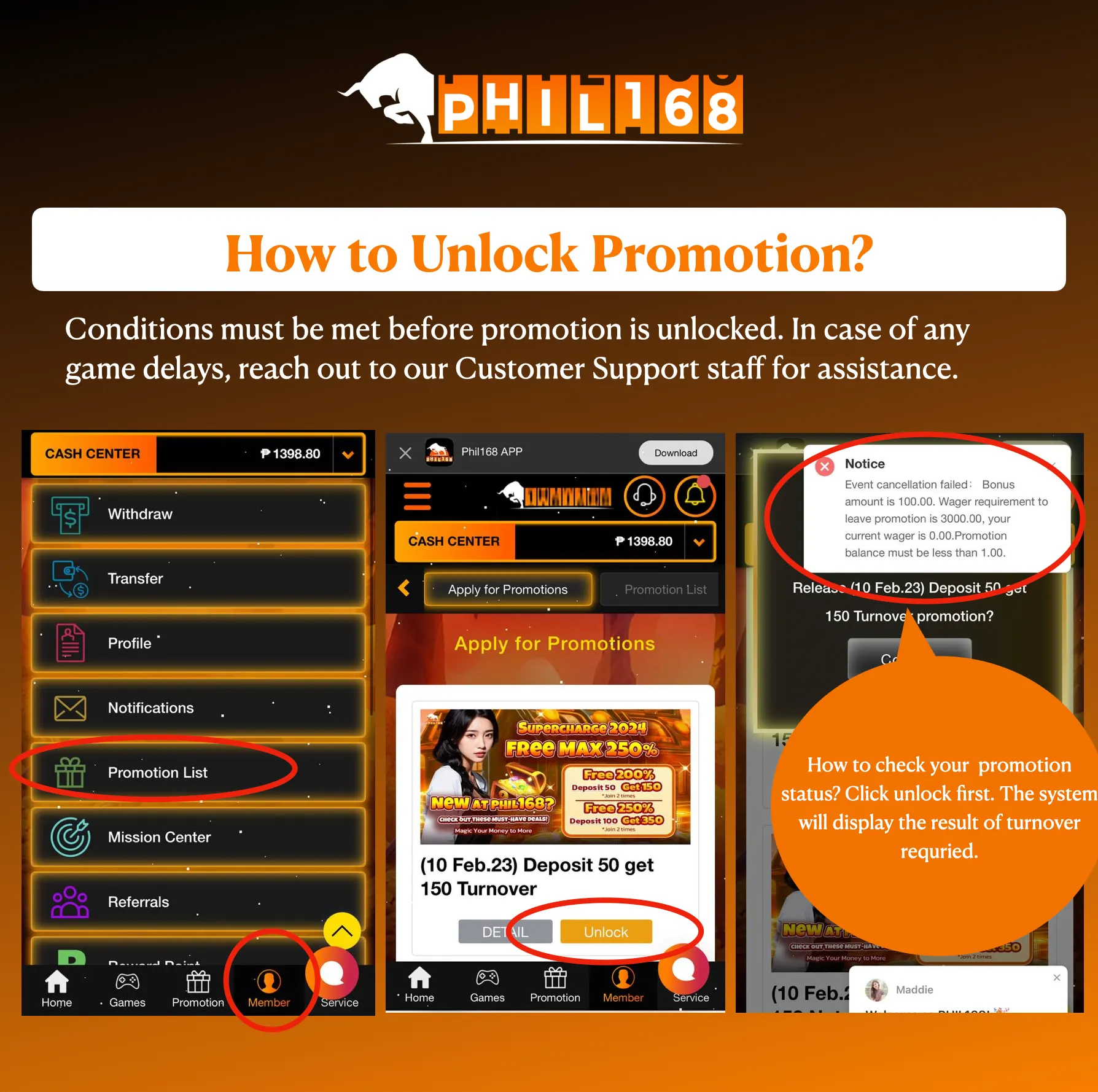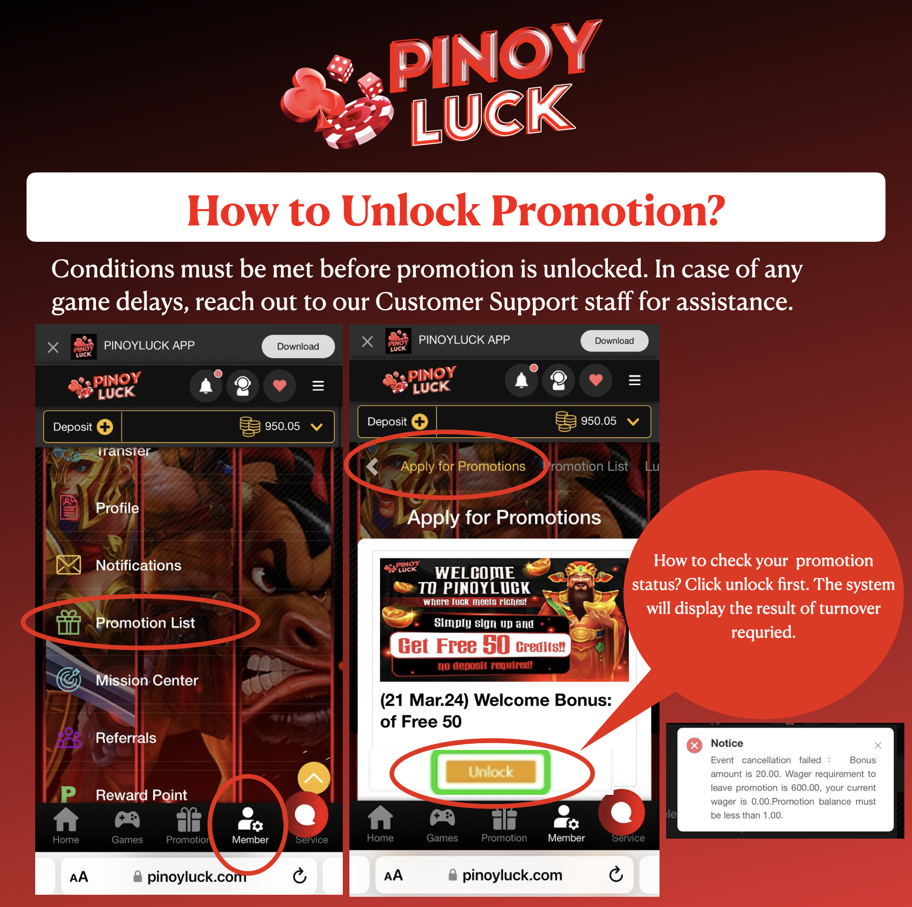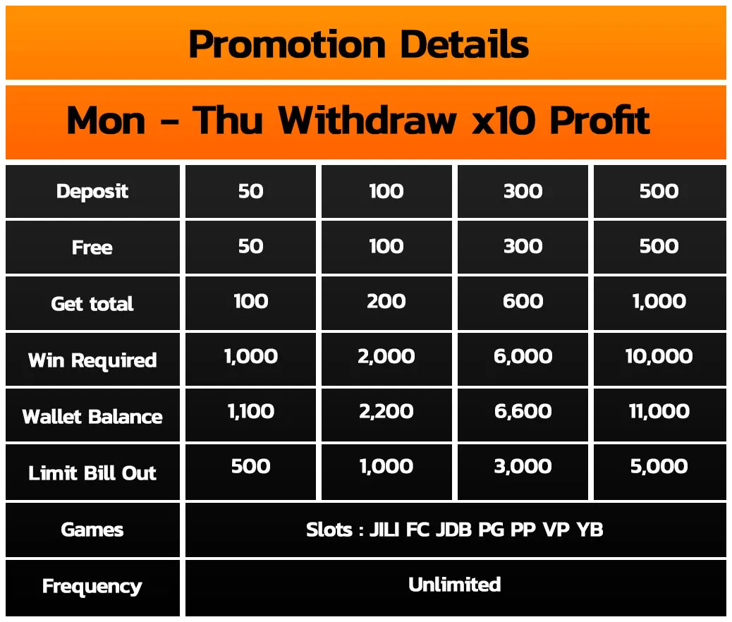 • The maximum withdrawal amount is the limit you can receive after unlocking the promotion. Any excess balance above this limit will be deducted automatically.