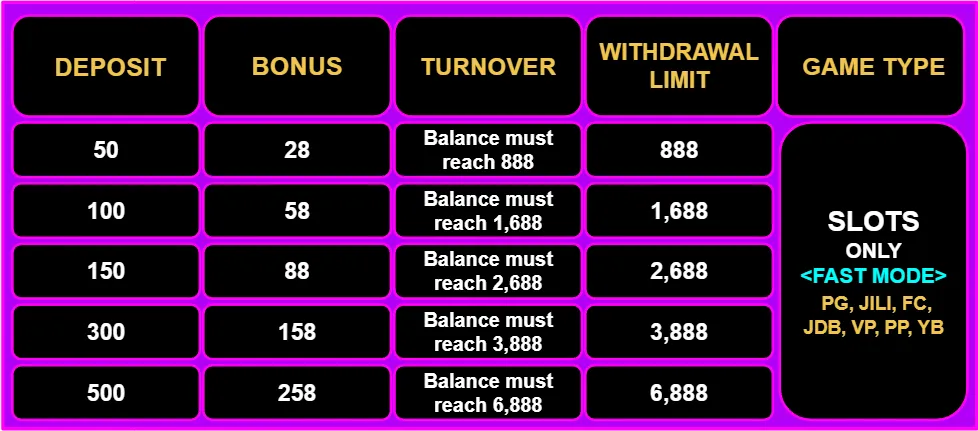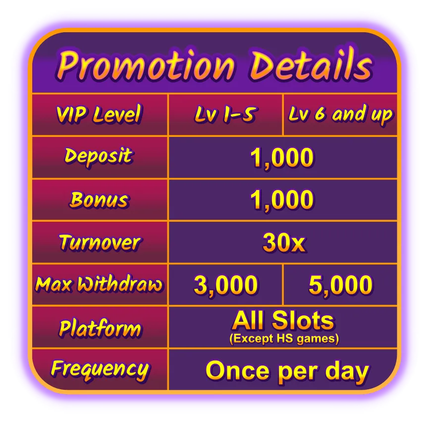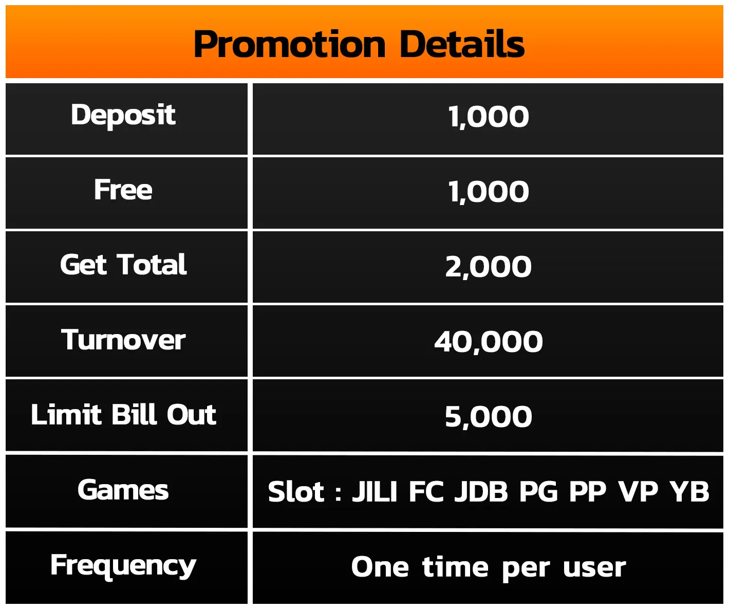 1. This promotion is only for slot games . The turnover in other game kind wouldn’t be counted