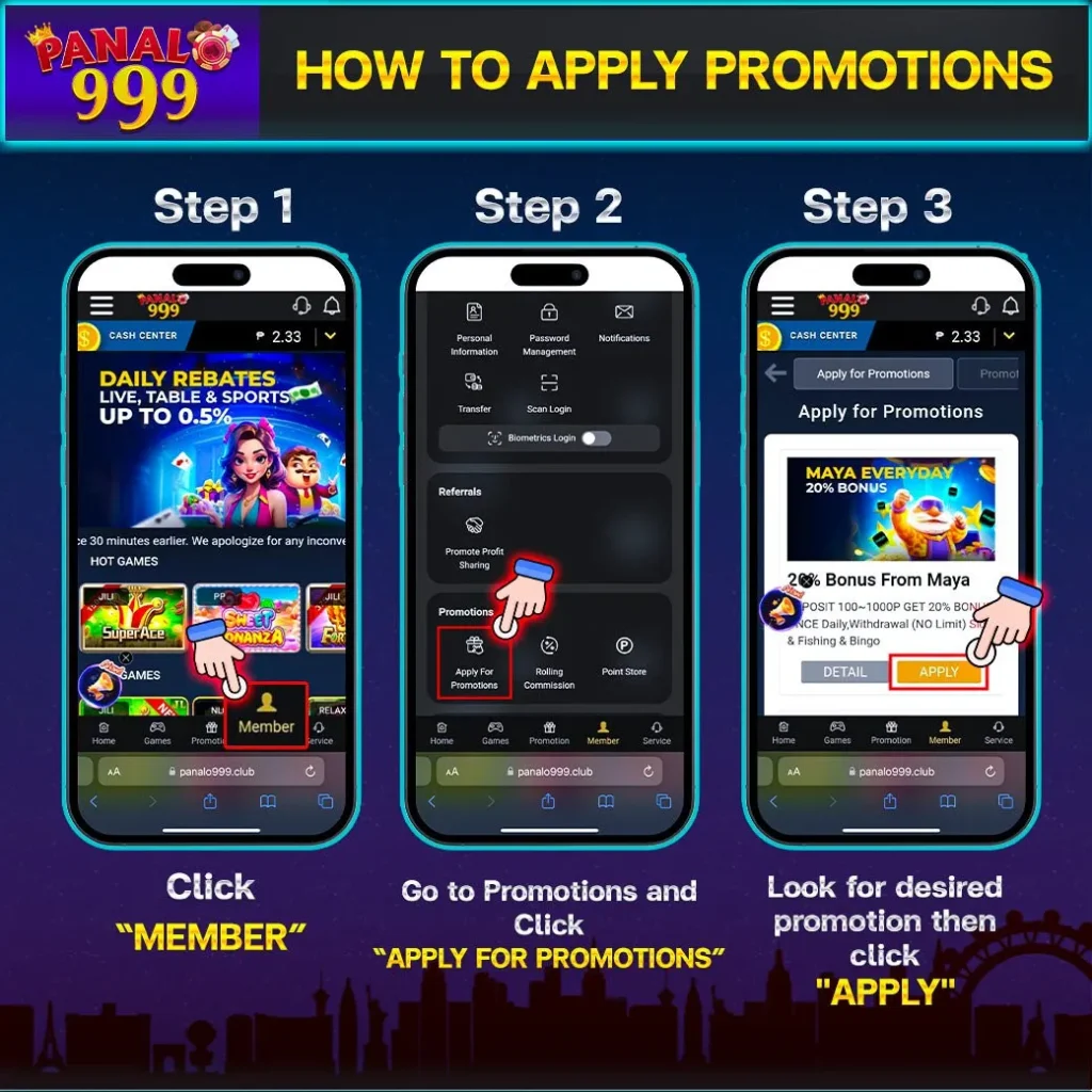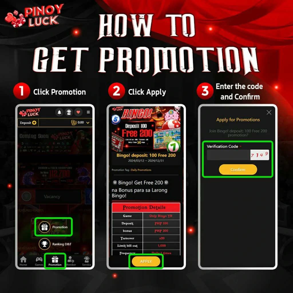 1.How to apply, click: Promotion List>>Choose Promo>>Press APPLY to avail.