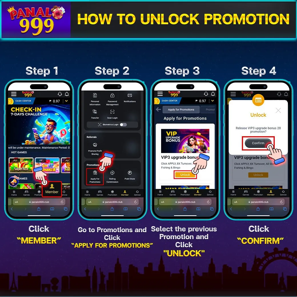 3. Players must leave/exit the game properly before UNLOCKING the promotion as PANALO999 will not be held liable for any loss with the balance.