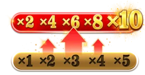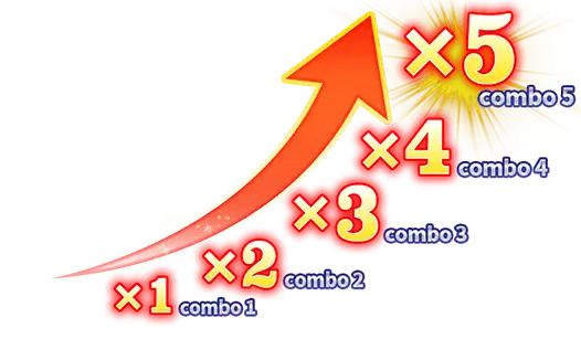 • How it works: The multiplier starts at x1 and increases when you get consecutive wins, but resets back to x1 when no winning combinations are formed.